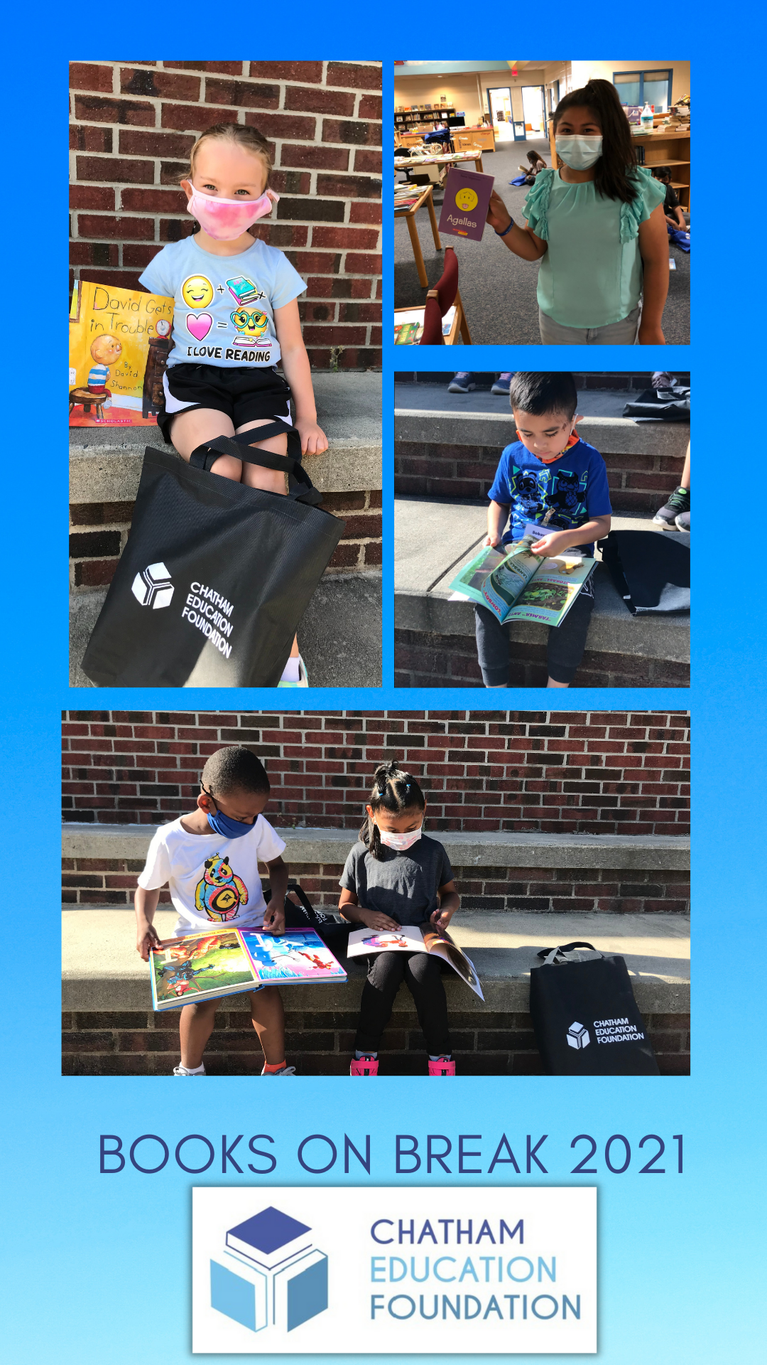 This year, we were very excited to be back in the schools for the student selection day for our Books on Break program. This program is a free book fair for students in some of our high-poverty schools in Chatham County. Depending upon grade level, students were able to choose 3-5 books to take home to build their at-home libraries. Providing self-selected reading materials for the students to remain engaged in reading and learning over the summer is essential so they do not lose the important skills that they worked so hard to learn during the school year. If there were absent students or those who still attend virtual school, bags of books were packed for them to pick up. No student was left out.